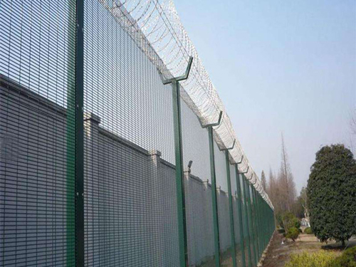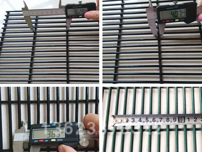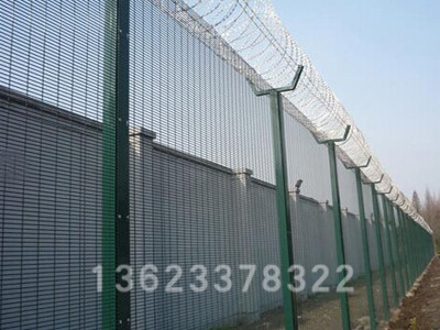監(jiān)獄防攀爬密紋網(wǎng)采用358密紋網(wǎng)制作,又稱為358護(hù)欄網(wǎng)或358監(jiān)獄密紋隔離網(wǎng)。 358防攀爬密紋網(wǎng)在防護(hù)設(shè)施中與片狀刺繩結(jié)合,堅固實用,孔小,能很大程度上防止人或工具攀爬,被廣泛的應(yīng)用于監(jiān)獄、看守所、拘留所、戒毒所、未管所、軍事、機(jī)場、安全部隊、輕軌、城際列車、邊境等的重要隔離措施。